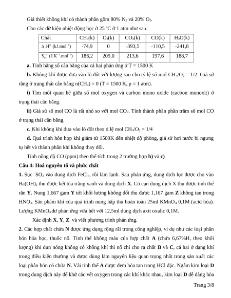 II)CH4(k) + 3/2 O2(k) → CO(k) + 2 H2O(k) Trang 2/8
