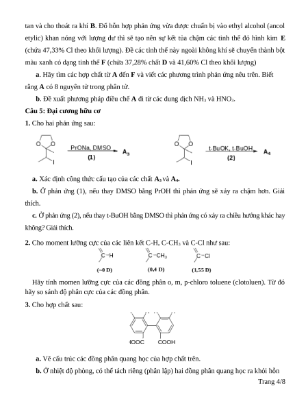 b. Ở nhiệt độ phòng, có thể tách riêng (phân lập) hai đồng phân quang học ra khỏi hỗn Trang 4/8