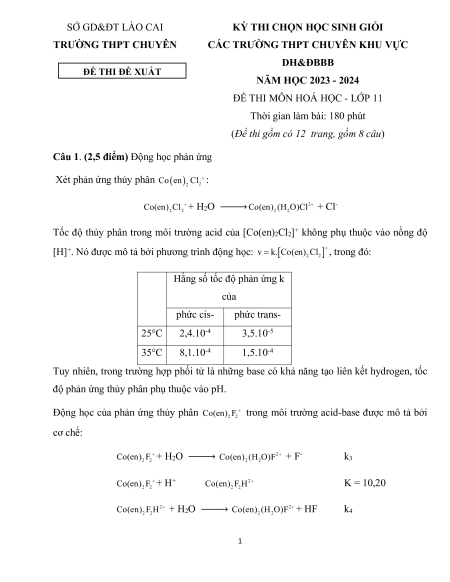 Đề thi HSG Hóa học 11 Trường THPT Chuyên Lào Cai