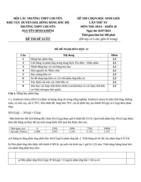- Tailieugiaovien.com.vn giới thiệu Tổng hợp đề thi chọn học sinh giỏi Hóa học 11 của các trường THPT Chuyên khu vực Duyên hải và Đồng bằng Bắc Bộ gồm 27 đề đề xuất và 1 đề chính thức có lời giải giúp giáo viên, học sinh có thêm tài liệu tham khảo.