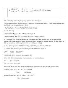 Câu 2. Cân bằng và phản ứng trong dung dịch. Pin điện – Điện phân