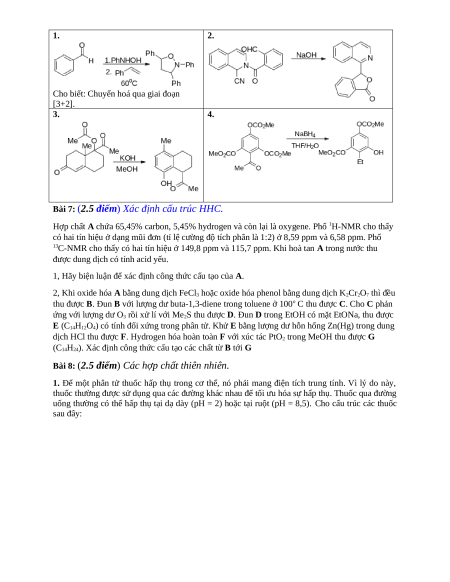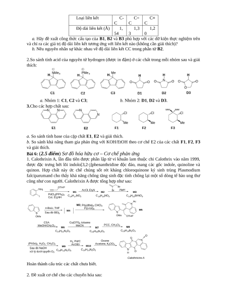 Bài 6: (2.5 điểm) Sơ đồ hóa hữu cơ – Cơ chế phản ứng