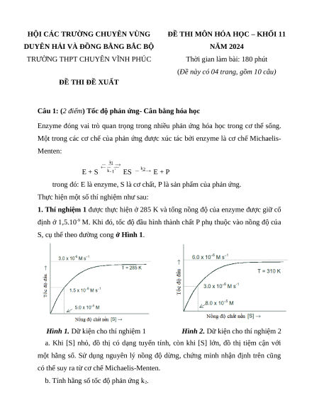 1. Thí nghiệm 1 được thực hiện ở 285 K và tổng nồng độ của enzyme được giữ cố