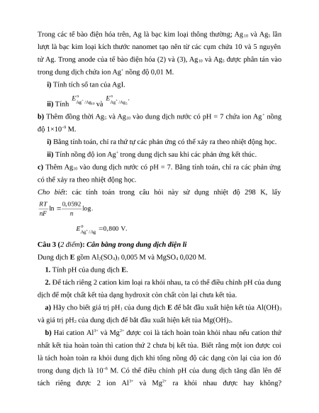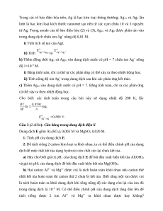 Câu 3 (2 điểm): Cân bằng trong dung dịch điện li