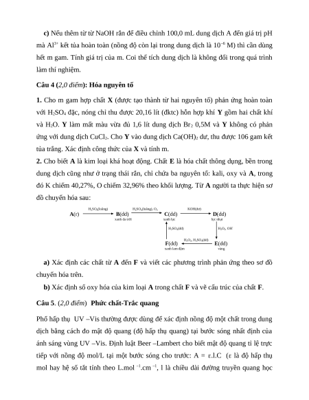 Câu 5. (2,0 điểm) Phức chất-Trắc quang