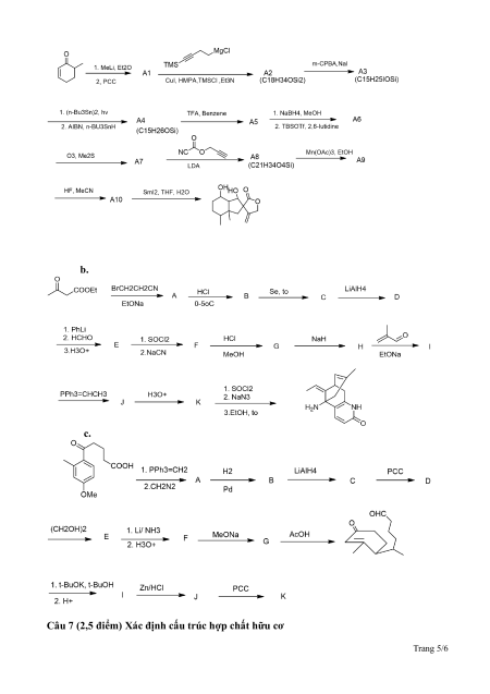 Câu 6 (2,5 điểm) Sơ đồ tổng hợp hữu cơ. Cơ chế phản ứng hóa hữu cơ.