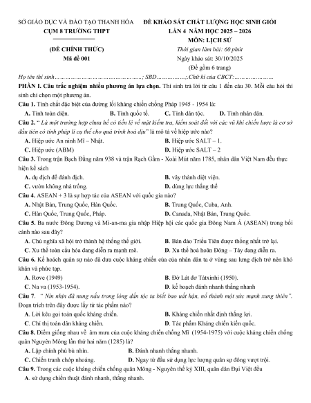 LẦN 4 NĂM HỌC 2025 – 2026 MÔN: LỊCH SỬ (ĐỀ CHÍNH THỨC)