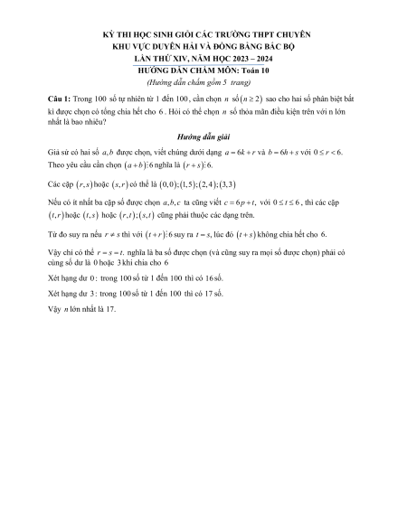 KHU VỰC DUYÊN HẢI VÀ ĐỒNG BẰNG BẮC BỘ NĂM HỌC 2023 - 2024 Môn thi: Toán 10 ĐỀ THI ĐỀ XUẤT