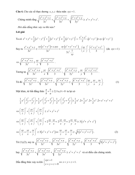 Câu 4. Cho các số thực dương x, y, z thỏa mãn xyz 1. 4 4 4 4 4 4