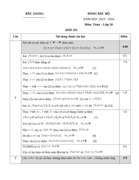 Đề thi HSG Toán 10 Trường THPT Chuyên Bắc Giang