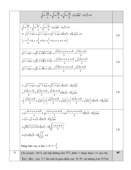 vào (1) và sử dụng (5)(6) ta được 1.0 (7) Từ (1)(7) ta có Nếu suy ra , thay vào (2) ta được Do đó và (8) Thay vào (1) ta được (9) Từ (8)(9) ta có . 0.5