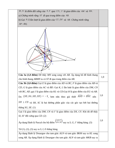 Câu 3a (1,0 điểm) Dễ thấy MN song song với AB. Áp dụng bổ đề hình thang 1,0