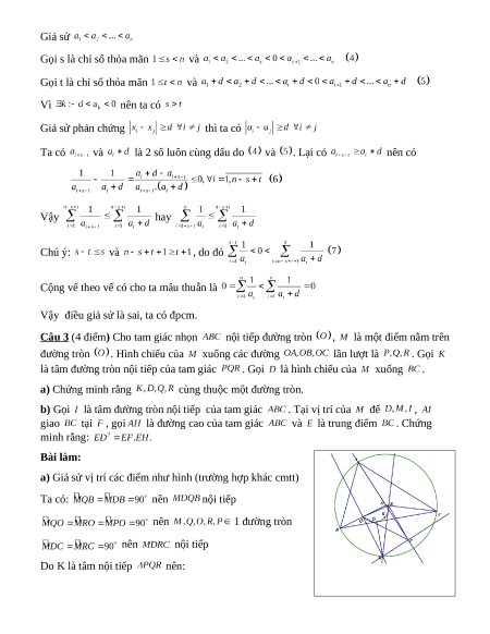 Gọi t là chỉ số thỏa mãn và Vì nên ta có Giả sử phản chứng thì ta có Ta có và