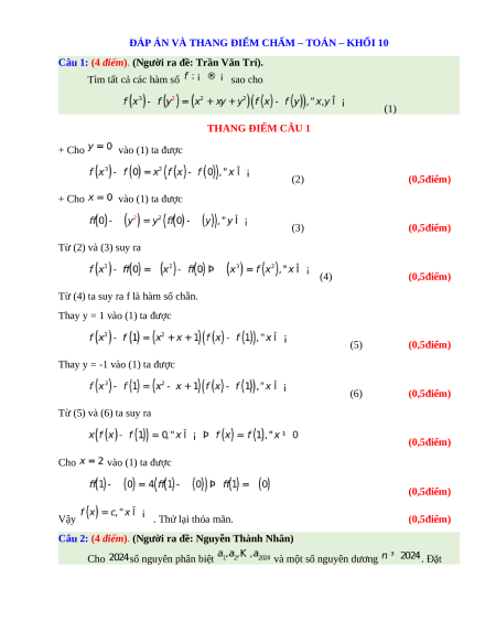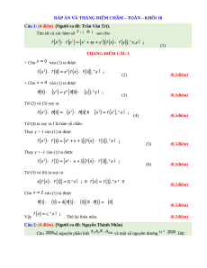 Tìm tất cả các hàm số sao cho (1) THANG ĐIỂM CÂU 1 + Cho vào (1) ta được (2) (0,5điểm) + Cho vào (1) ta được (3) (0,5điểm) Từ (2) và (3) suy ra (4) (0,5điểm)