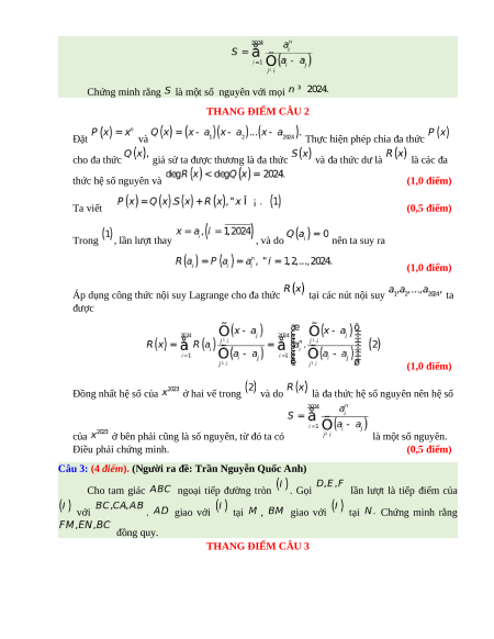 Câu 2: (4 điểm). (Người ra đề: Nguyễn Thành Nhân) Cho số nguyên phân biệt