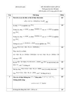 (Đề thi gồm có 01 trang, gồm 05 câu) Câu Nội dung Điểm 1