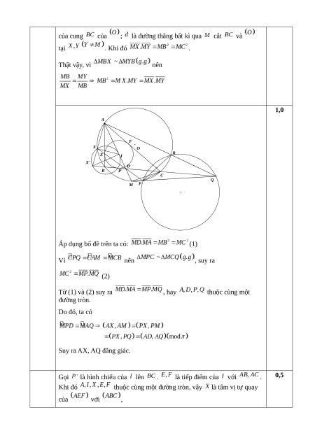 Áp dụng bổ đề trên ta có: (1) Vì nên , suy ra (2) Từ (1) và (2) suy ra , hay thuộc cùng một đường tròn. Do đó, ta có Suy ra AX, AQ đẳng giác. Gọi là hình chiếu của lên .