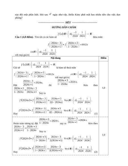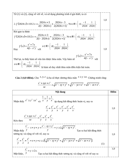 Câu 1 (4,0 điểm). Tìm tất cả các hàm số thỏa mãn: với mọi giá trị