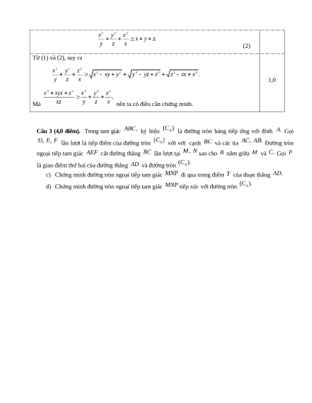 Tạo ra hai bất đẳng thức tương tự, và cộng vế với vế suy ra (2) Từ (1) và (2), suy ra 1,0 Mà