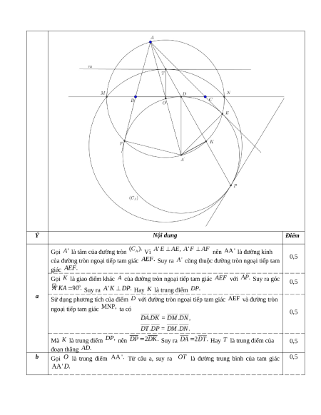 b) Chứng minh đường tròn ngoại tiếp tam giác