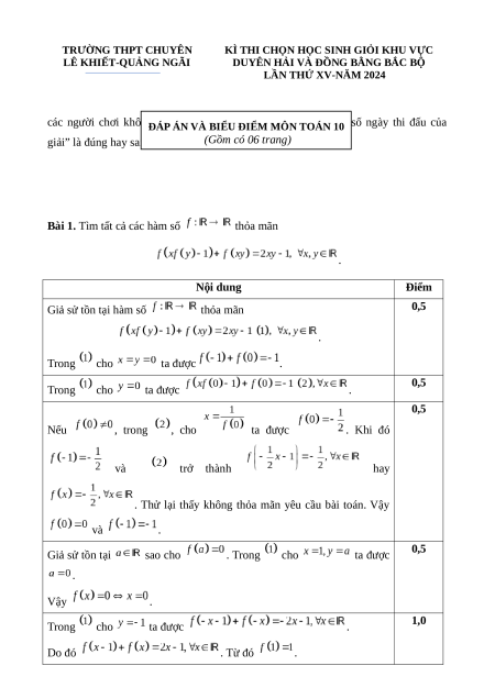 Bài 1. Tìm tất cả các hàm số thỏa mãn . Nội dung Điểm