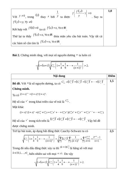 Bài 2. Chứng minh rằng, với mọi số nguyên dương ta luôn có Nội dung Điểm 1,5