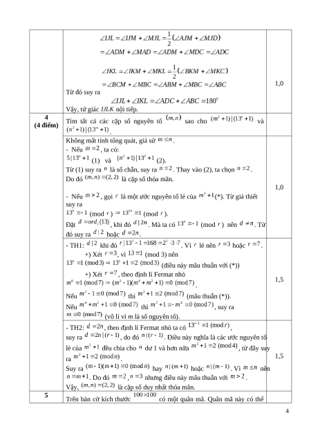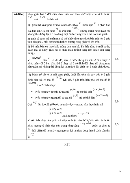 Câu 5 (4,0 điểm). Trên bàn cờ kích thước