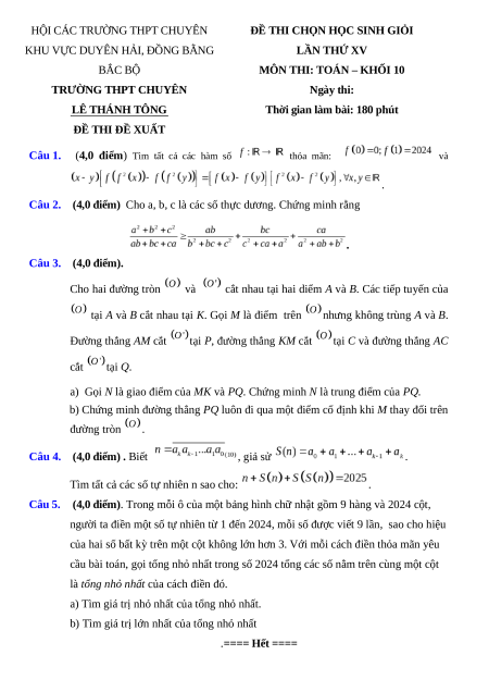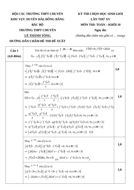 MÔN THI: TOÁN – KHỐI 10 TRƯỜNG THPT CHUYÊN Ngày thi: LÊ THÁNH TÔNG