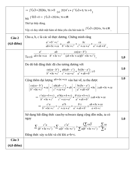 Đẳng thức xảy ra khi và chỉ khi a=b=c. Câu 3 (4,0 điểm)