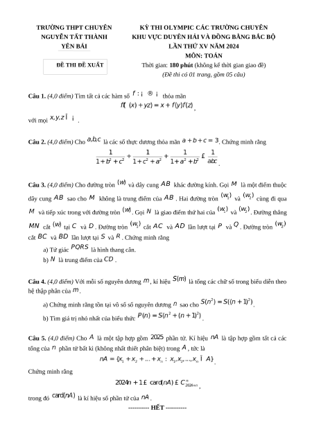 KỲ THI OLYMPIC CÁC TRƯỜNG CHUYÊN NGUYỄN TẤT THÀNH
