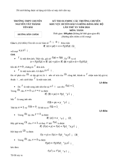Câu 1. (4,0 điểm) Tìm tất cả các hàm số thỏa mãn , với mọi . Giải.