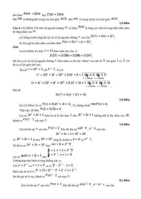 Câu 4. (4,0 điểm) Với mỗi số nguyên dương , kí hiệu