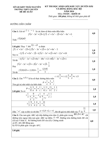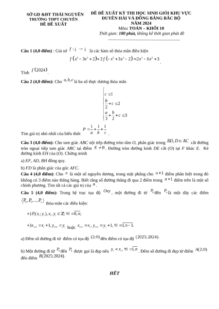 Đề thi HSG Toán 10 Trường THPT Chuyên Thái Nguyên