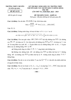 VÀ ĐỒNG BẰNG BẮC BỘ LẦN THỨ XV, NĂM HỌC 2023 – 2024 Môn: Toán 10