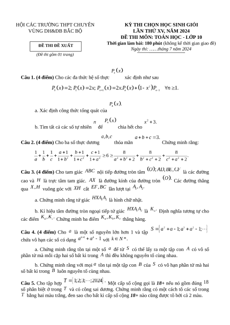 - Tailieugiaovien.com.vn giới thiệu Tổng hợp đề thi chọn học sinh giỏi Toán 10 của các trường THPT Chuyên khu vực Duyên hải và Đồng bằng Bắc Bộ gồm 25 đề đề xuất và 1 đề chính thức có lời giải giúp giáo viên, học sinh có thêm tài liệu tham khảo.