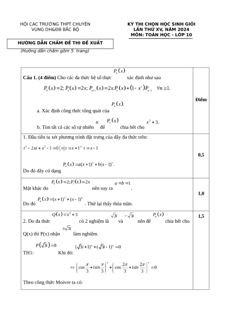1. Đầu tiên ta xét phương trình đặt trưng của dãy đa thức trên: 0,5 Do đó dãy có dạng Mặt khác do nên suy ra . 1,0 Do đó