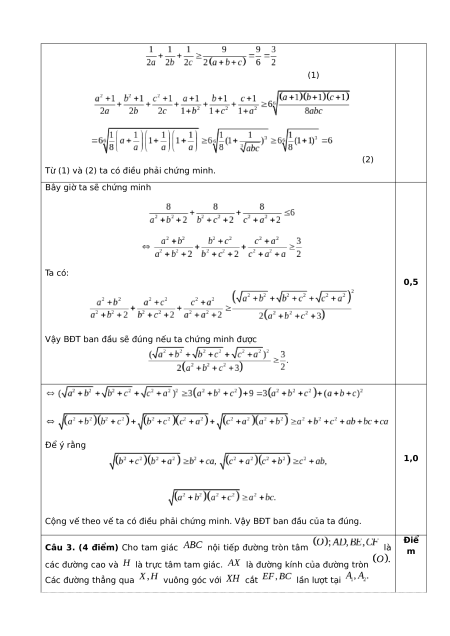 Câu 2. (4 điểm) Cho ba số thực dương thỏa mãn Chứng minh rằng: Điể m