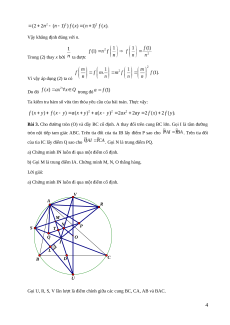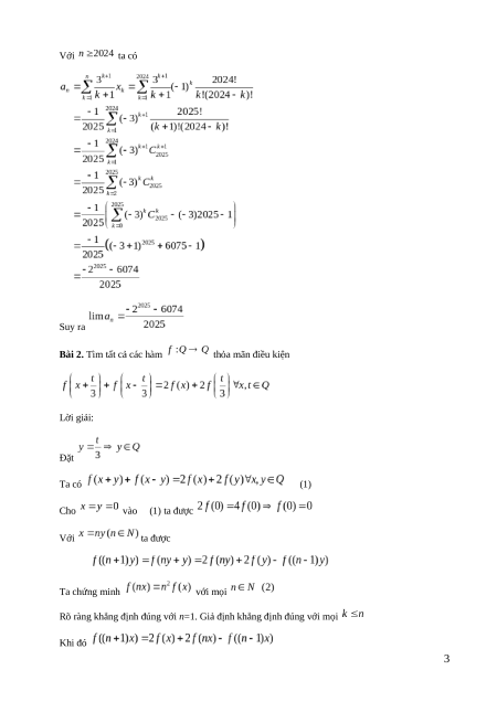Bài 2. Tìm tất cả các hàm thỏa mãn điều kiện Lời giải: Đặt Ta có (1) Cho vào (1) ta được Với ta được Ta chứng minh với mọi