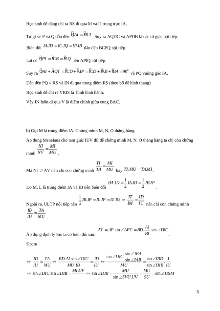 Gọi U, R, S, V lần lượt là điểm chính giữa các cung BC, CA, AB và BAC. 4