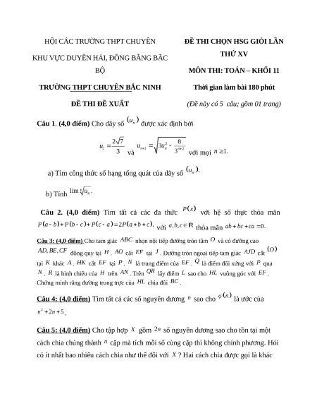 Đề thi HSG Toán 11 Trường THPT Chuyên Bắc Ninh