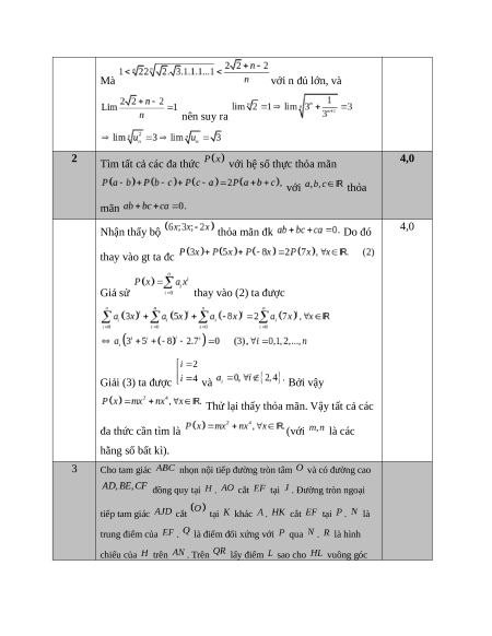 Thử lại thấy thỏa mãn. Vậy tất cả các đa thức cần tìm là (với là các hằng số bất kì). 3 Cho tam giác