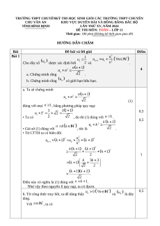 Đề bài và lời giải Điểm Bài 1 Cho dãy số được xác định bởi và . 4 a. Chứng minh rằng . b. Chứng minh rằng có giới hạn hữu hạn. a. Ta sẽ chứng minh (1) đúng với mọi