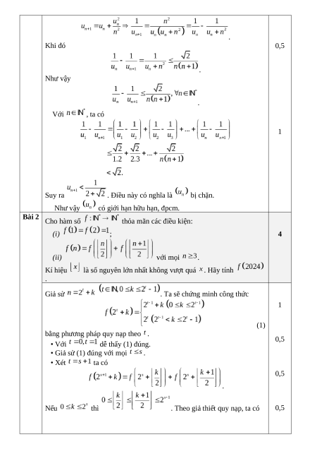 b. Từ công thức truy hồi, ta dễ dàng thấy và là dãy tăng. Với , ta có . Khi đó 0,5 . Như vậy . Với , ta có 1 Suy ra . Điều này có nghĩa là bị chặn. Như vậy