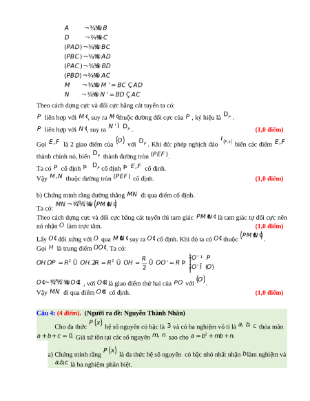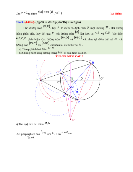 Câu 3: (4 điểm). (Người ra đề: Nguyễn Thị Kim Ngân) Cho đường tròn