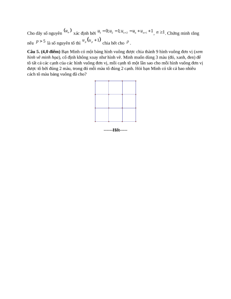 cách tô màu bảng vuông đã cho? ------Hết----- TRƯỜNG THPT CHUYÊN
