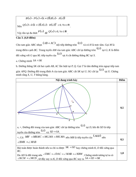 b) Hỏi có tồn tại hay không đa thức để Câu 3. (4,0 điểm)
