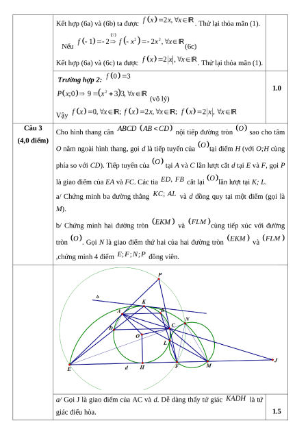 Câu 3. (4,0 điểm) Cho hình thang cân nội tiếp đường tròn sao