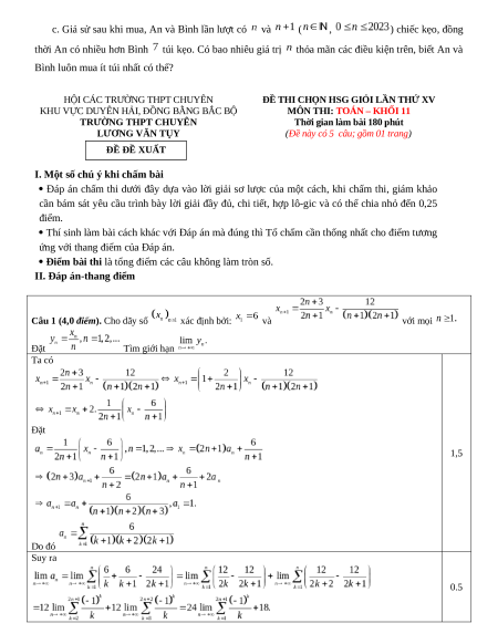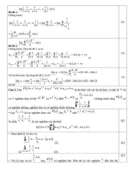 Câu 1 (4,0 điểm). Cho dãy số xác định bởi: và với mọi Đặt Tìm giới hạn Ta có Đặt 1,5 Do đó Suy ra 0.5 Bổ đề 1: Chứng minh: 0,5 Bổ đề 2: