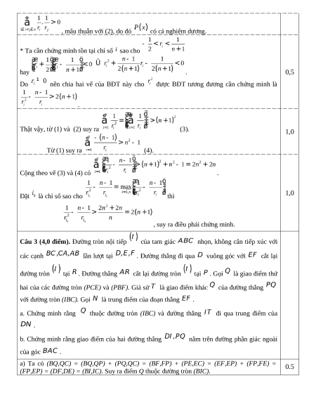 Câu 3 (4,0 điểm). Đường tròn nội tiếp của tam giác