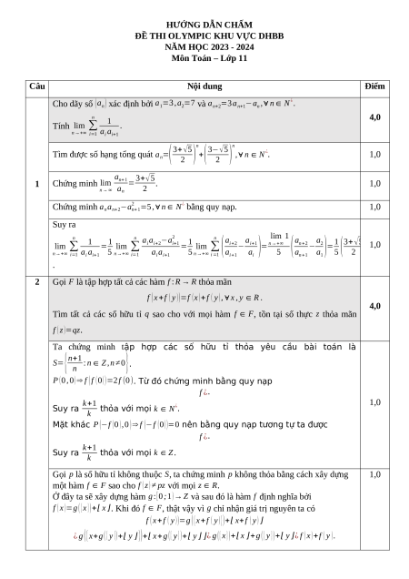 ĐỀ THI OLYMPIC KHU VỰC DHBB NĂM HỌC 2023 - 2024 Môn Toán – Lớp 11 Câu Nội dung Điểm Cho dãy số (a =3 , a =7 , ∀ n∈ N¿.